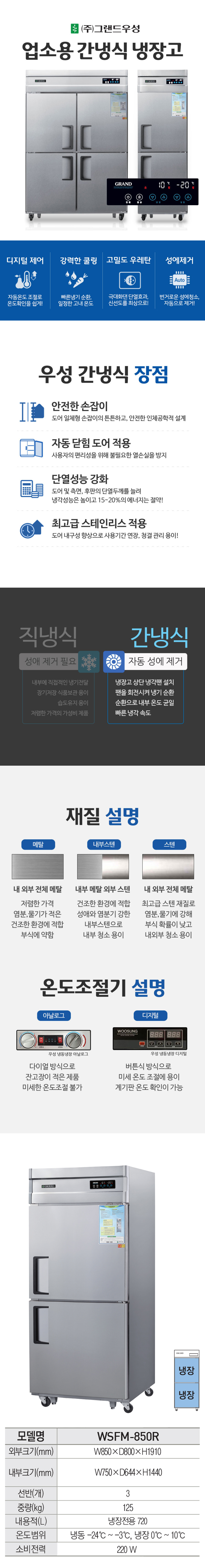 [그랜드우성] 간냉식 스탠드 냉장고 720L 올스텐