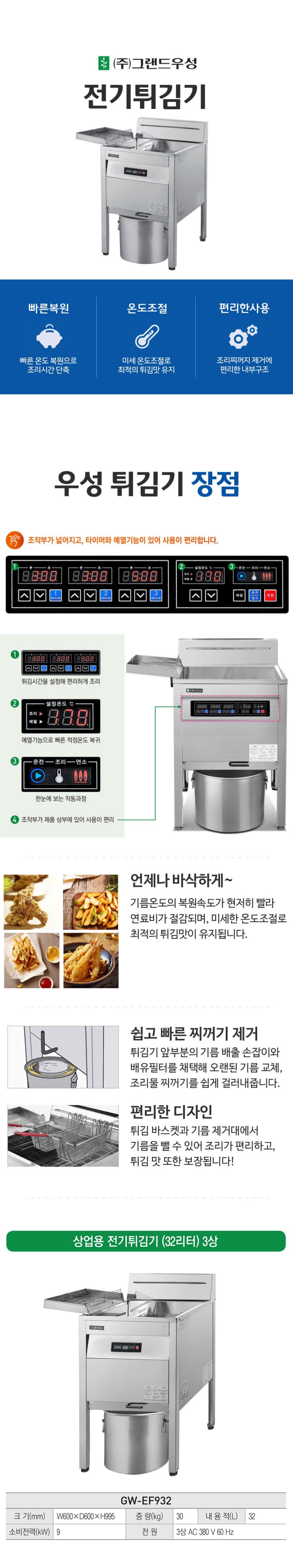 GW-EF932 유버스 [그랜드우성] 업소용 전기 튀김기 29L 3상 제품분류 업소용 AS기간 1년 최저 렌탈가 월 68,100 (렌탈가) 제휴카드 할인가 월 (렌탈가) 3년 4년 5년 할인 제휴카드 보기 렌탈신청 장바구니