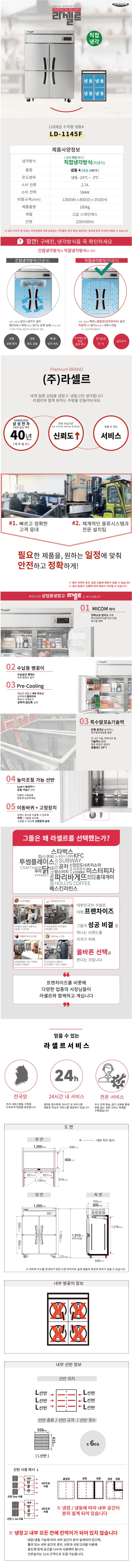LD-1145F 유버스 [라셀르] 직냉식 냉동고 1100L급 올스텐 제품분류 업소용 용량(총량) 1000L이상 기능 4도어 AS기간 1년 최저 렌탈가 월 92,300 (렌탈가) 제휴카드 할인가 월 (렌탈가) 3년 4년 5년 할인 제휴카드 보기 렌탈신청 장바구니