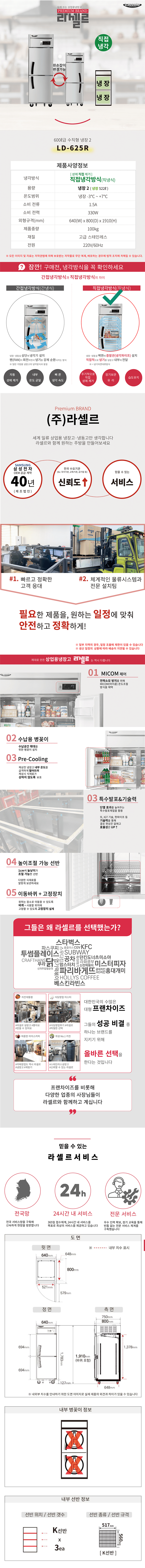 LD-625R 유버스 [라셀르] 직냉식 냉장고 600L급 올스텐 제품분류 업소용 용량(총량) 500L이상 기능 2도어 AS기간 1년 최저 렌탈가 월 66,200 (렌탈가) 제휴카드 할인가 월 (렌탈가) 3년 4년 5년 할인 제휴카드 보기 렌탈신청 장바구니
