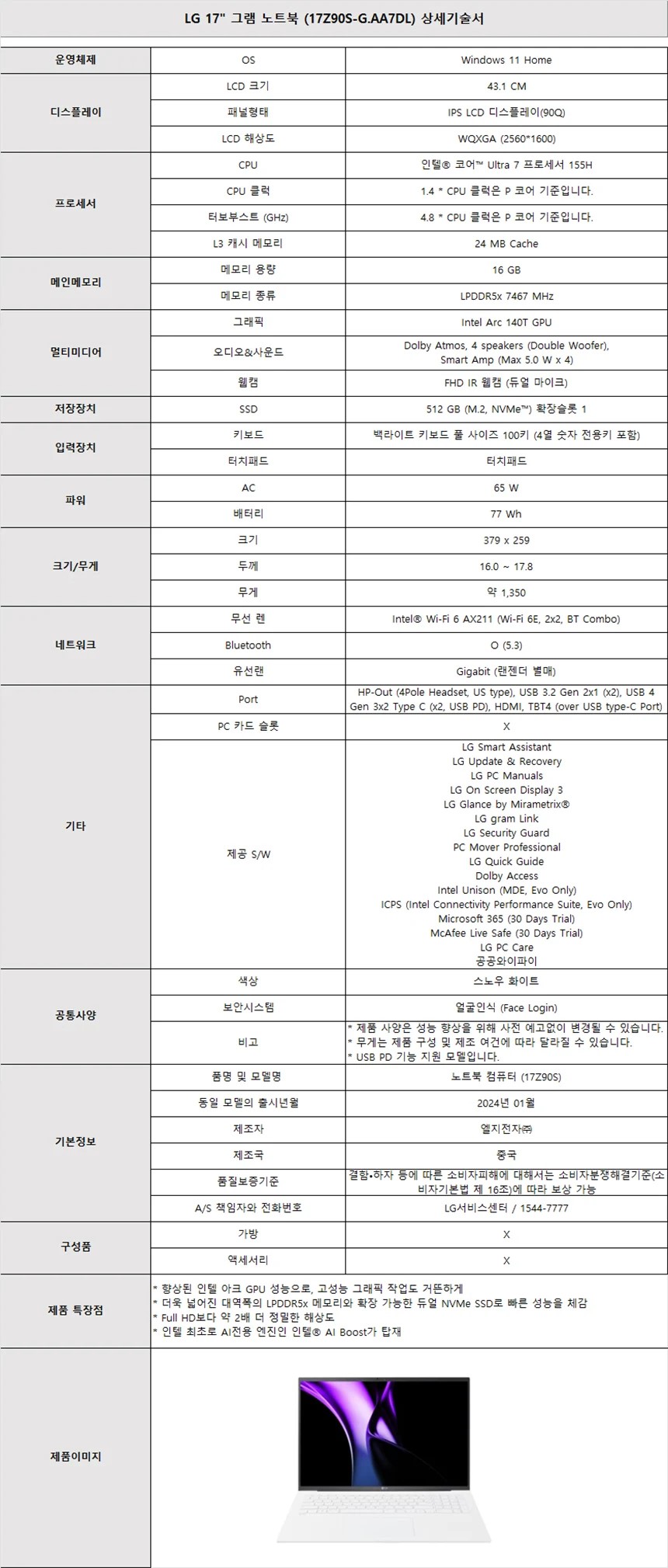 17Z90S-G.AA7DL 더리본 [LG] 그램 노트북 17인치 스노우 화이트 제품분류 생활가전 제품규격 17인치 구좌 3구좌 AS기간 1년 A/S기간 사업장6개월 최저 렌탈가 월 98,000 (렌탈가) 제휴카드 할인가 월 (렌탈가) 1-60회 61-188회 할인 제휴카드 보기 렌탈신청 장바구니