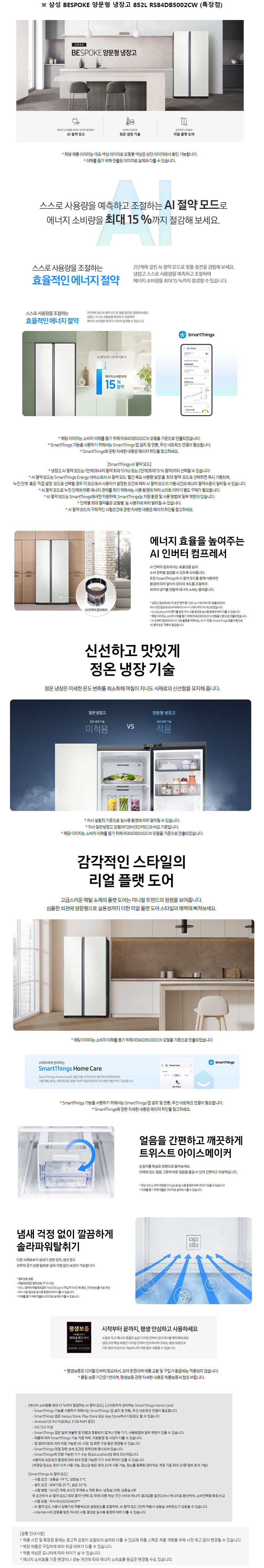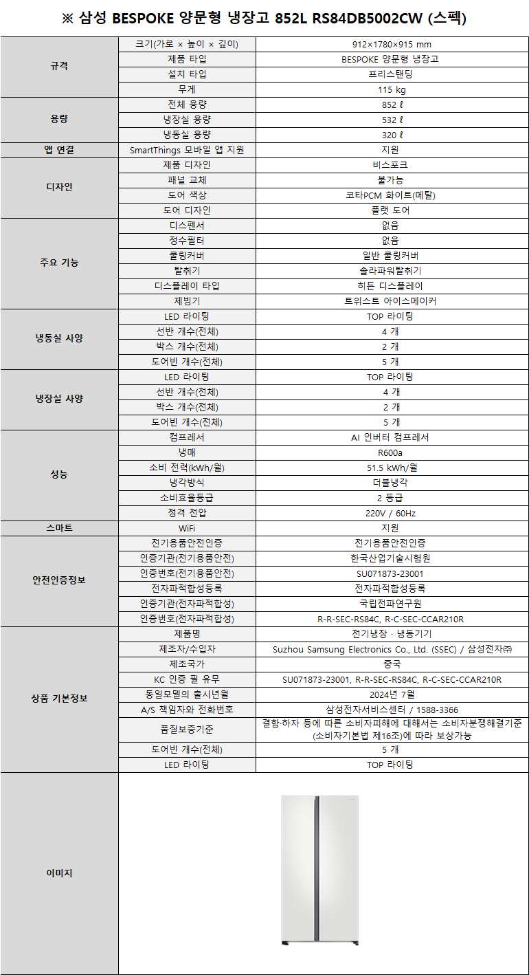 RS84DB5002CW 소노아임레디 [삼성] 비스포크 양문형 냉장고 852L 코타화이트 제품분류 주방가전 용량(총량) 800L이상 기능 2도어 구좌 2구좌 AS기간 1년 최저 렌탈가 월 33,000 (렌탈가) 제휴카드 할인가 월 (렌탈가) 1-200회 할인 제휴카드 보기 렌탈신청 장바구니