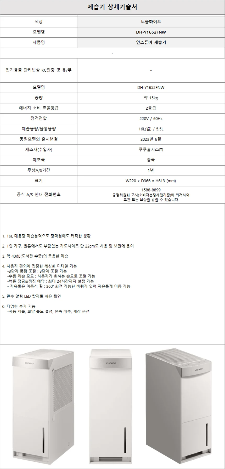 CA-CRC1010W+DH-Y1652FNW 소노아임레디 [쿠쿠] 인스퓨어 벽걸이 에어컨 10평형 화이트+초슬림 인스퓨어 제습기 16L 노블화이트 제품분류 생활가전 구좌 2구좌 AS기간 1년 최저 렌탈가 월 33,000 (렌탈가) 제휴카드 할인가 월 (렌탈가) 1-200회 할인 제휴카드 보기 렌탈신청 장바구니
