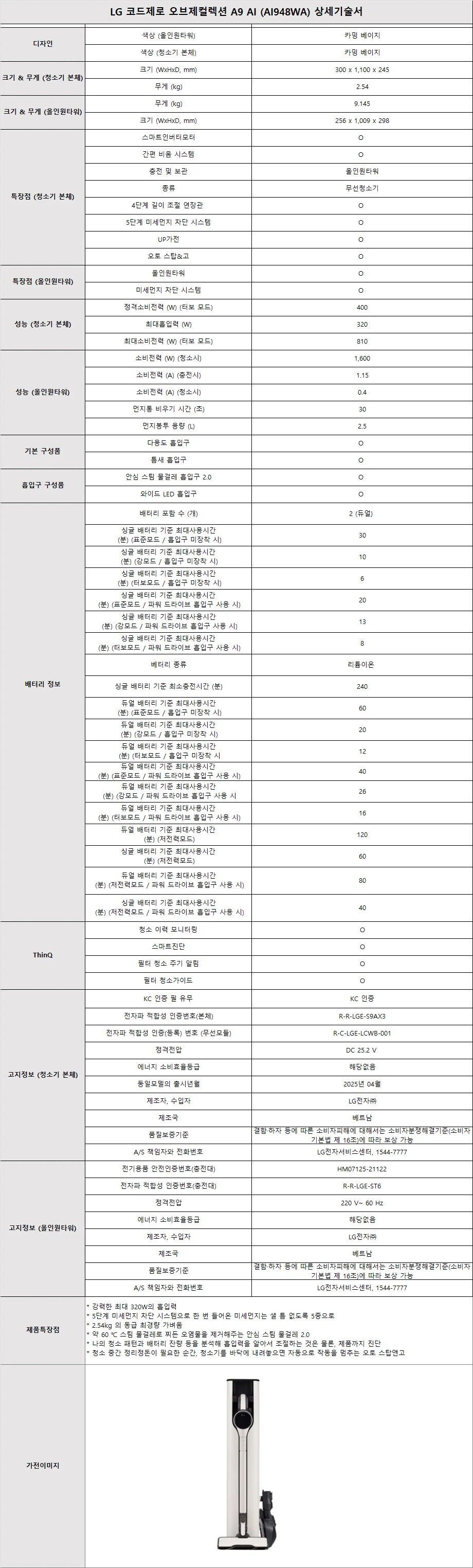 AI948WA+AS195DWWA 소노아임레디 [LG] 코드제로 AI 오브제컬렉션 A9 무선청소기 카밍베이지 + 퓨리케어 360도 공기청정기 플러스 18.5평형 크리미스노우 제품분류 결합상품 구좌 4구좌 AS기간 1년 최저 렌탈가 월 66,000 (렌탈가) 제휴카드 할인가 월 (렌탈가) 1-200회 할인 제휴카드 보기 렌탈신청 장바구니