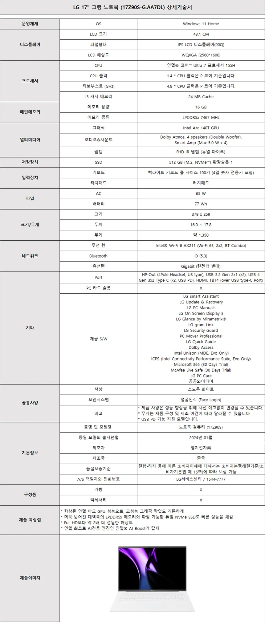 17Z90S-G.AA7DL 소노아임레디 [LG] 그램 노트북 17인치 스노우화이트 제품분류 생활가전 제품규격 17인치 구좌 4구좌 AS기간 1년 최저 렌탈가 월 66,000 (렌탈가) 제휴카드 할인가 월 (렌탈가) 1-200회 할인 제휴카드 보기 렌탈신청 장바구니