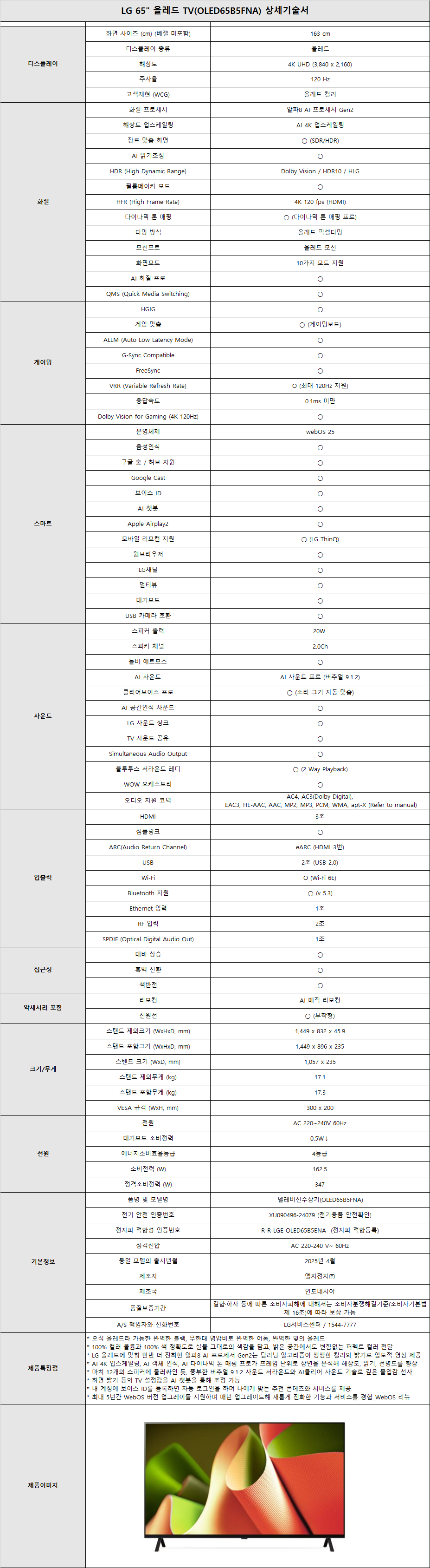OLED65B5FNA 소노아임레디 [LG] 올레드 TV 65인치 제품분류 생활가전 제품규격 65인치 구좌 4구좌 AS기간 1년 최저 렌탈가 월 66,000 (렌탈가) 제휴카드 할인가 월 (렌탈가) 1-200회 할인 제휴카드 보기 렌탈신청 장바구니