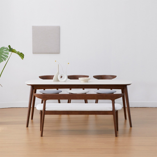 [헨지디자인] 카일리 6인 포세린 식탁 벤치형 세트 의자3+벤치1 [카일리 6인 식탁 벤치형 SET]