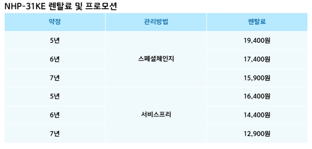 NHP-31KE 코웨이 [코웨이] 프라임 하이브리드 제품분류 전기레인지 AS기간 렌탈기간내 최저 렌탈가 월 12,900 (렌탈가) 제휴카드 할인가 월 (렌탈가) 5년 6년 7년 서비스프리 스페셜체인지 할인 제휴카드 보기 렌탈신청 장바구니