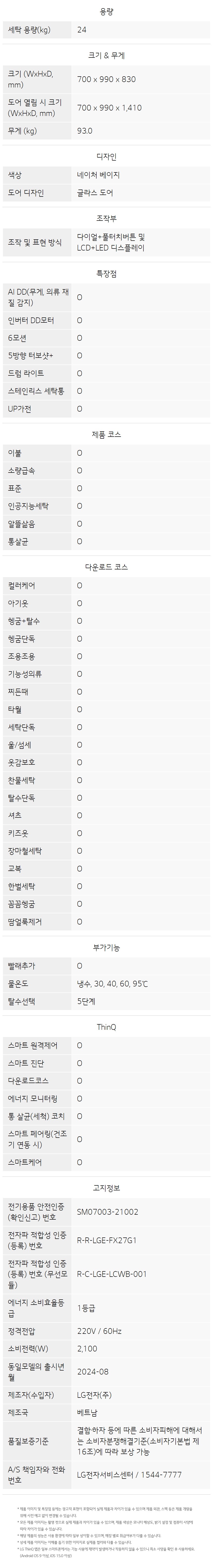 FG24EN LG전자구독 [LG] 트롬 오브제컬렉션 세탁기 24kg 네이처베이지 제품분류 세탁기 용량(총량) 24KG AS기간 렌탈기간내 최저 렌탈가 월 36,900 (렌탈가) 제휴카드 할인가 월 (렌탈가) 3년 4년 5년 6년 방문관리/6개월 방문관리/12개월 방문관리/24개월 할인 제휴카드 보기 렌탈신청 장바구니