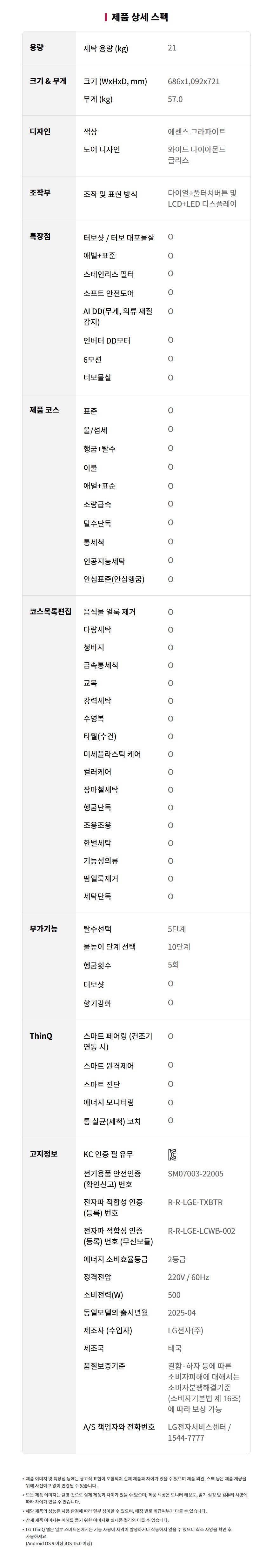 T21GZ9 LG전자구독 [LG] 통돌이 컴포트 세탁기 21kg 에센스그라파이트 제품분류 세탁기 용량(총량) 21KG AS기간 렌탈기간내 최저 렌탈가 월 28,900 (렌탈가) 제휴카드 할인가 월 (렌탈가) 3년 4년 5년 6년 방문관리/6개월 방문관리/12개월 방문관리/24개월 할인 제휴카드 보기 렌탈신청 장바구니