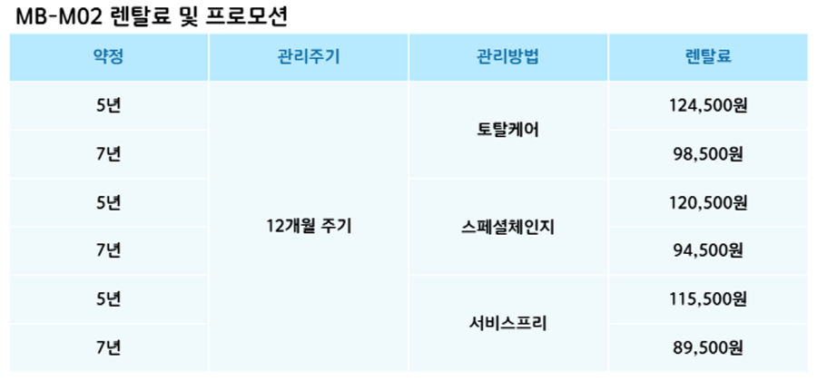 1688-9377 빠르고 간편한 렌탈 상담신청 개인정보 수집/이용 내용보기 동의 미동의 ※ 개인정보수집이용 동의 1. 개인정보의 수집 및 이용목적 : 원활한 렌탈 상담 및 주문을 위한 참조자료로 아래와 같은 항목의 개인정보를 수집하고 있습니다 2. 수집하려는 개인정보 항목 : 필수 수집항목 : 이름, 연락처 3. 개인정보의 보유 및 이용기간 : 수집된 정보는 이용자의 정보 삭제 요구 시까지 보관, 활용하며 수집 및 이용 목적이 달성된 후 해당 정보를 지체 없이 파기합니다. 단순 상담고객 3개월 후 파기 / 계약 고객 12개월 후 파기 4. 개인정보 취급 담당자 : 이름 : 신동우연락처 : 1688-9377 5. 개인정보 수집 동의거부 사항 : 이용자의 개인정보는 원활한 상담을 위해 수집하고 있으며, 동의하지 않을 경우 상담 및 주문이 제한됩니다. [닫기]