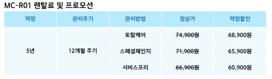 1688-9377 빠르고 간편한 렌탈 상담신청 개인정보 수집/이용 내용보기 동의 미동의 ※ 개인정보수집이용 동의 1. 개인정보의 수집 및 이용목적 : 원활한 렌탈 상담 및 주문을 위한 참조자료로 아래와 같은 항목의 개인정보를 수집하고 있습니다 2. 수집하려는 개인정보 항목 : 필수 수집항목 : 이름, 연락처 3. 개인정보의 보유 및 이용기간 : 수집된 정보는 이용자의 정보 삭제 요구 시까지 보관, 활용하며 수집 및 이용 목적이 달성된 후 해당 정보를 지체 없이 파기합니다. 단순 상담고객 3개월 후 파기 / 계약 고객 12개월 후 파기 4. 개인정보 취급 담당자 : 이름 : 신동우연락처 : 1688-9377 5. 개인정보 수집 동의거부 사항 : 이용자의 개인정보는 원활한 상담을 위해 수집하고 있으며, 동의하지 않을 경우 상담 및 주문이 제한됩니다. [닫기]