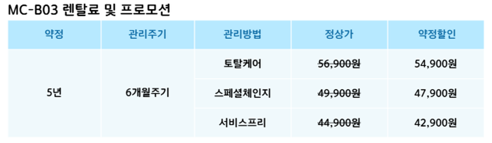 1688-9377 빠르고 간편한 렌탈 상담신청 개인정보 수집/이용 내용보기 동의 미동의 ※ 개인정보수집이용 동의 1. 개인정보의 수집 및 이용목적 : 원활한 렌탈 상담 및 주문을 위한 참조자료로 아래와 같은 항목의 개인정보를 수집하고 있습니다 2. 수집하려는 개인정보 항목 : 필수 수집항목 : 이름, 연락처 3. 개인정보의 보유 및 이용기간 : 수집된 정보는 이용자의 정보 삭제 요구 시까지 보관, 활용하며 수집 및 이용 목적이 달성된 후 해당 정보를 지체 없이 파기합니다. 단순 상담고객 3개월 후 파기 / 계약 고객 12개월 후 파기 4. 개인정보 취급 담당자 : 이름 : 신동우연락처 : 1688-9377 5. 개인정보 수집 동의거부 사항 : 이용자의 개인정보는 원활한 상담을 위해 수집하고 있으며, 동의하지 않을 경우 상담 및 주문이 제한됩니다. [닫기]