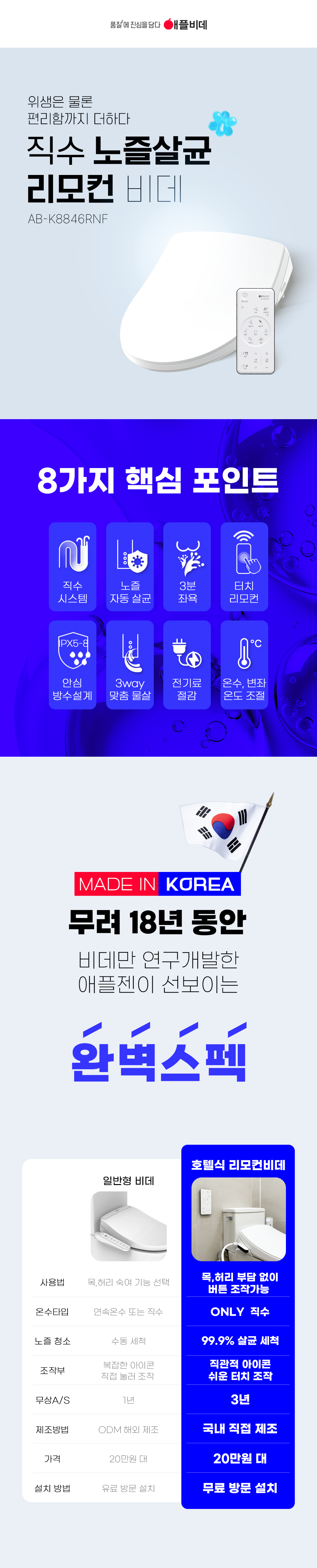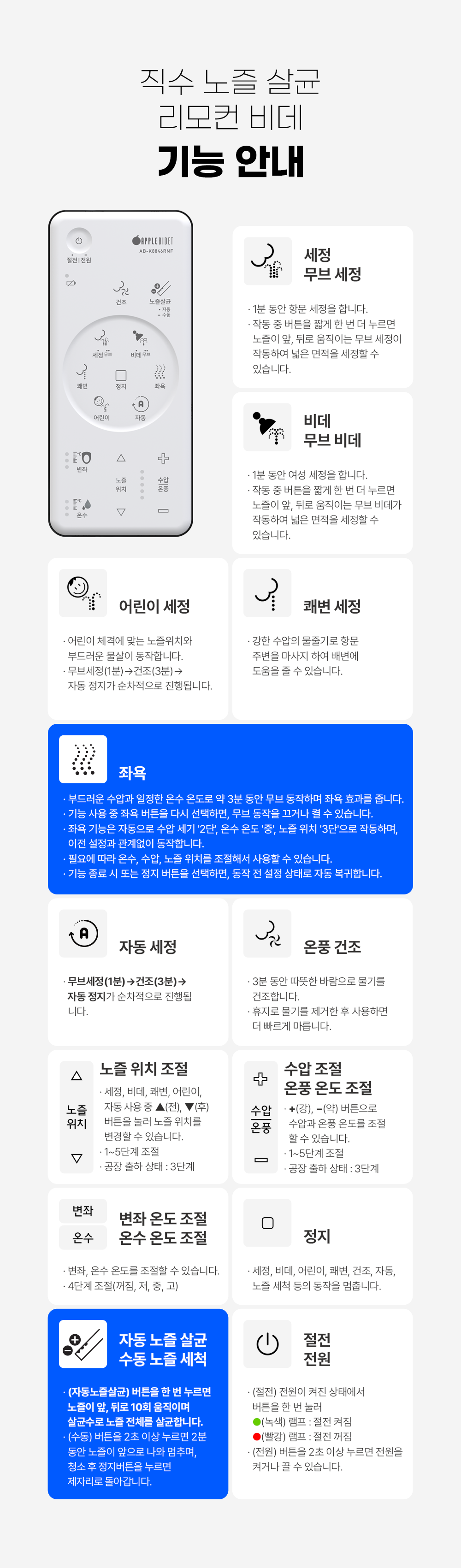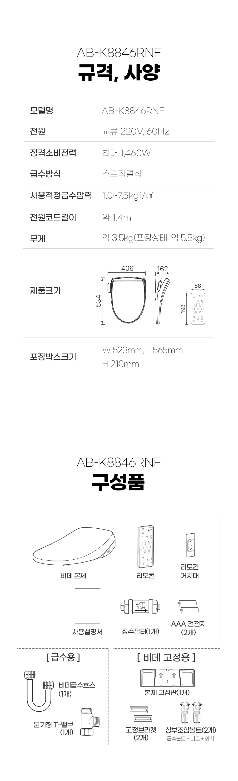 AB-K8846RNF 스마트렌탈 [애플비데] 리모콘 살균 비데 제품분류 비데 AS기간 3년 최저 렌탈가 월 11,900 (렌탈가) 제휴카드 할인가 월 (렌탈가) 3년 4년 5년 할인 제휴카드 보기 렌탈신청 장바구니