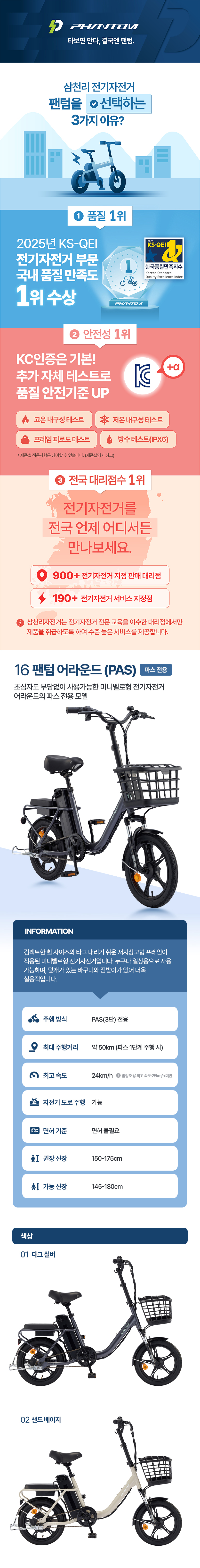 팬텀 어라운드 1-PAS BS렌탈 [삼천리] 2026 팬텀 어라운드 1 PAS 전용 전기자전거 16인치 제품분류 자전거/스쿠터 최저 렌탈가 월 28,000 (렌탈가) 제휴카드 할인가 월 (렌탈가) 4년 제품색상 선택 다크실버 + 0원 샌드베이지 + 0원 할인 제휴카드 보기 렌탈신청 장바구니