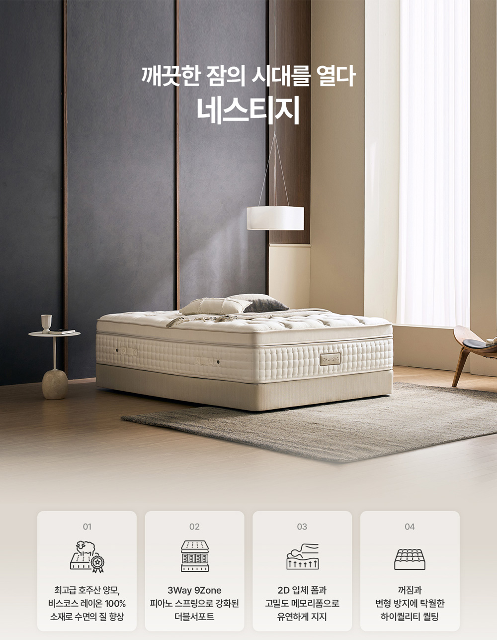 네스티지 매트리스 청호나이스 [청호나이스] 네스티지 매트리스 SS/Q/K/LK 제품분류 매트리스 AS기간 렌탈기간내 최저 렌탈가 월 38,900 (렌탈가) 제휴카드 할인가 월 (렌탈가) 5년 6년 슈퍼싱글 퀸 킹 라지킹 방문관리/4개월 방문관리/4개월(타사보상) 할인 제휴카드 보기 렌탈신청 장바구니